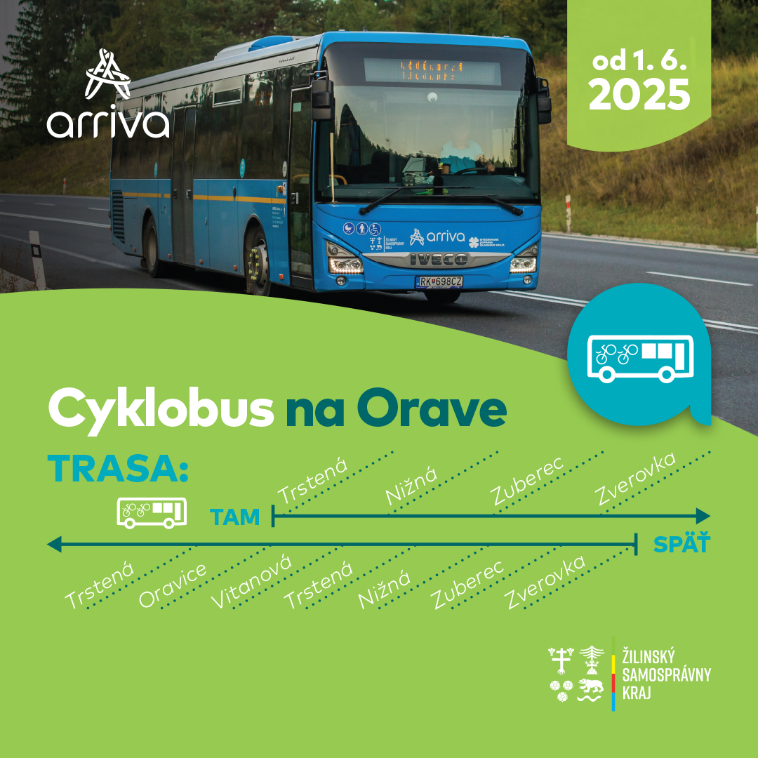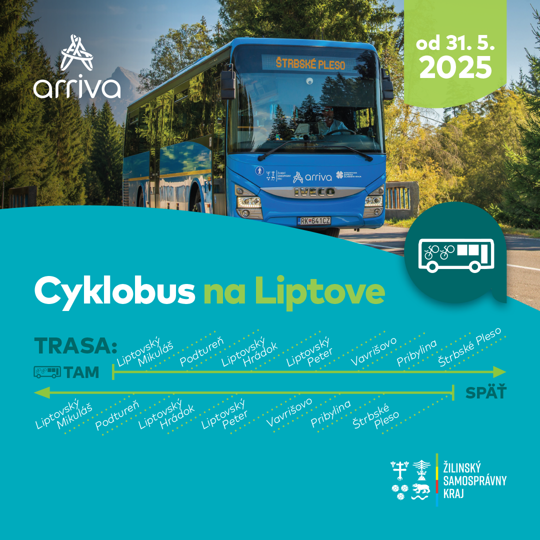 Cyklobusy budú v novej sezóne 2025 premávať na Liptove od 31. mája a na Orave od 1. júna 2025. Sú vybavené špeciálnymi nosičmi, ktorých kapacita je šesť bicyklov.
