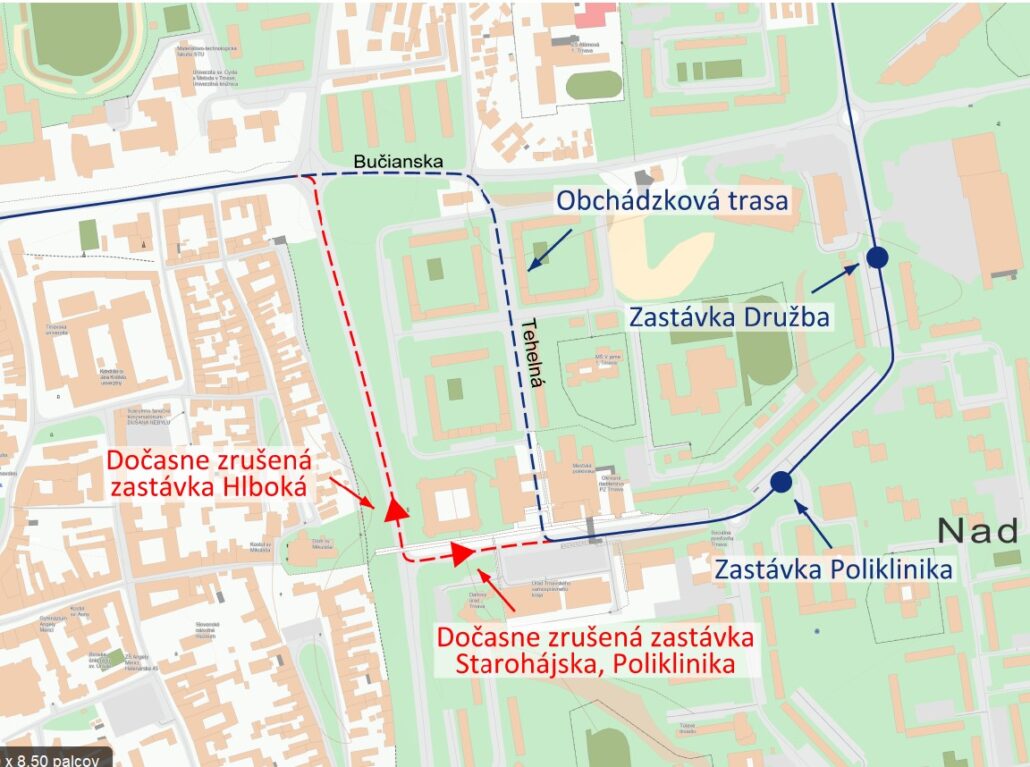 Dočasné zrušenie zastávok Hlboká A a Starohájska, Poliklinika A dňa 12.4.2025 v Trnave
