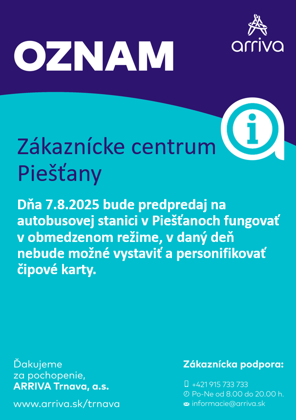 Zákaznícke centrum Piešťany – obmedzený režim 7.8.2025