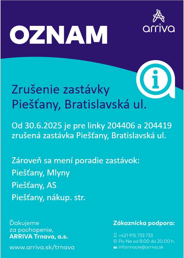Zrušená autobusová zastávka Piešťany, Bratislavská ul. od 30.6.2025